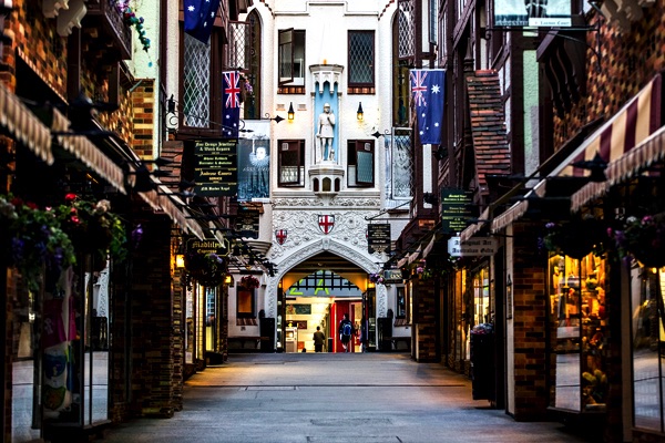 1937年に建てられた中世のチューダー様式を模した建物。 内部にはアンティーク・ショップ、お土産物店、カフェなど約40ものお店が両側に並び、観光名所として人気が高い。